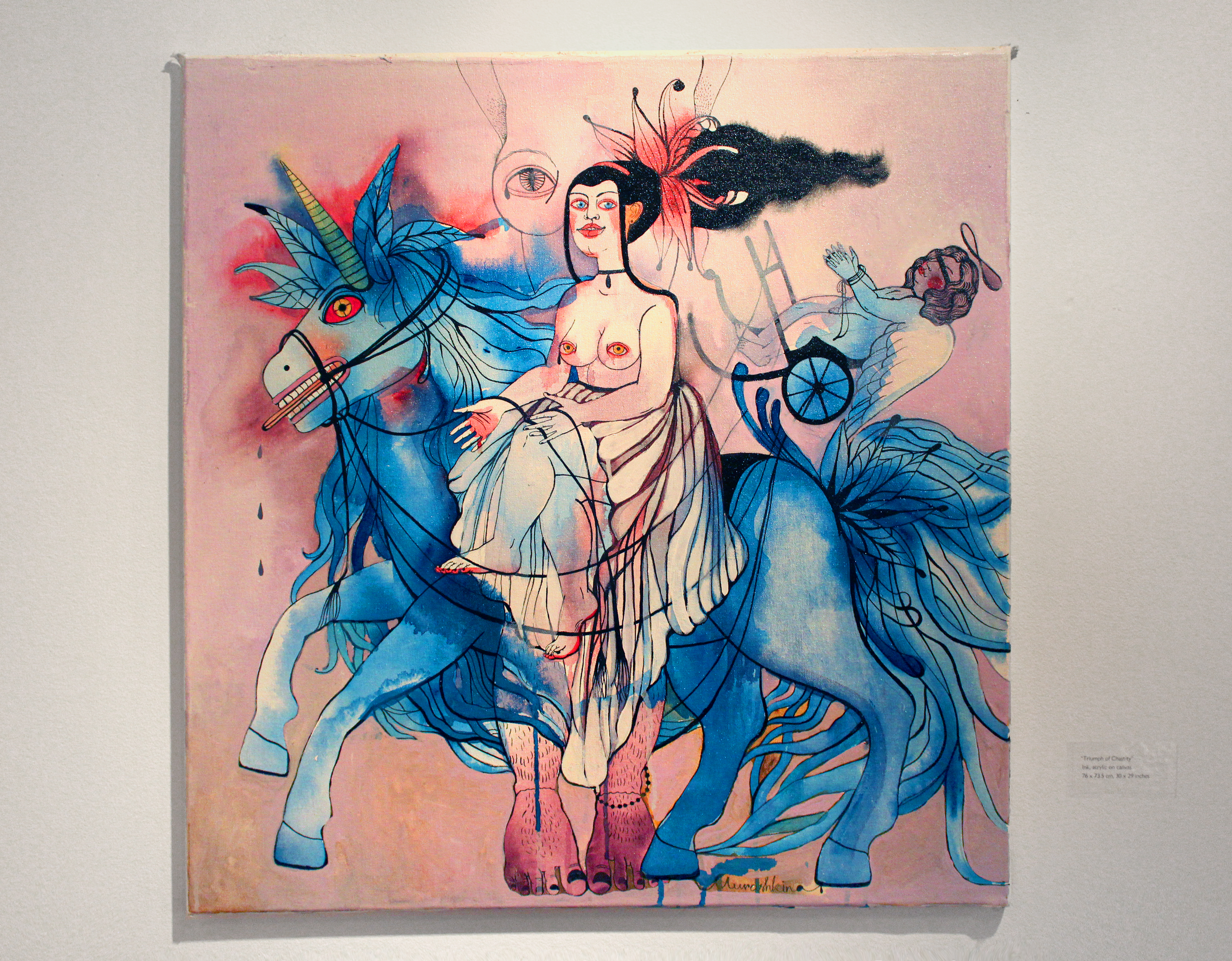 In this surreal series, Her Beasts, I channel the mystical energy of feminine symbolism that runs through all my work. The Beasts — a blue tiger, ghostly horses, moon-eyed cats — are not merely imagined creatures. They are living metaphors, surfacing from the depths of my subconscious like dreams on the edge of dissolving.