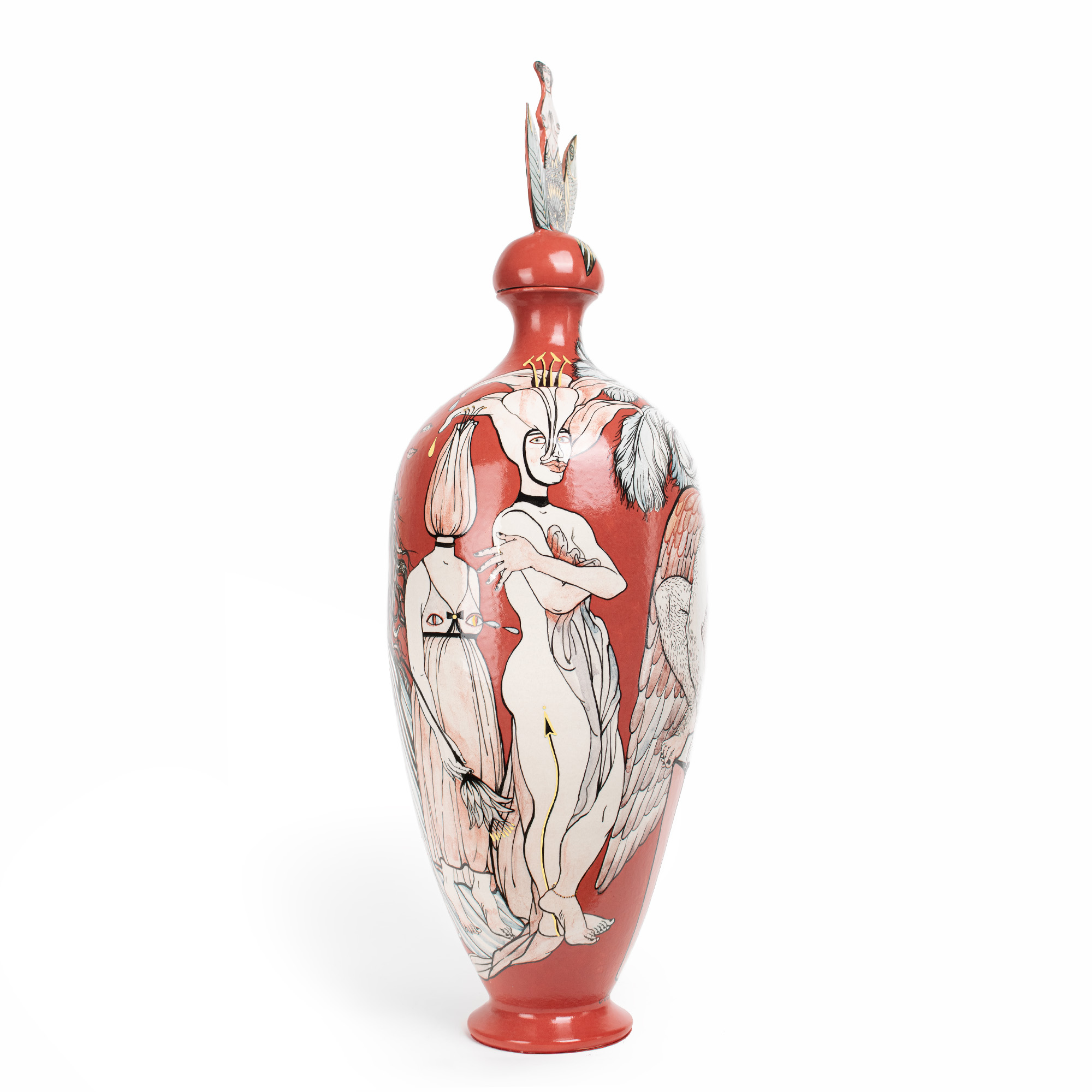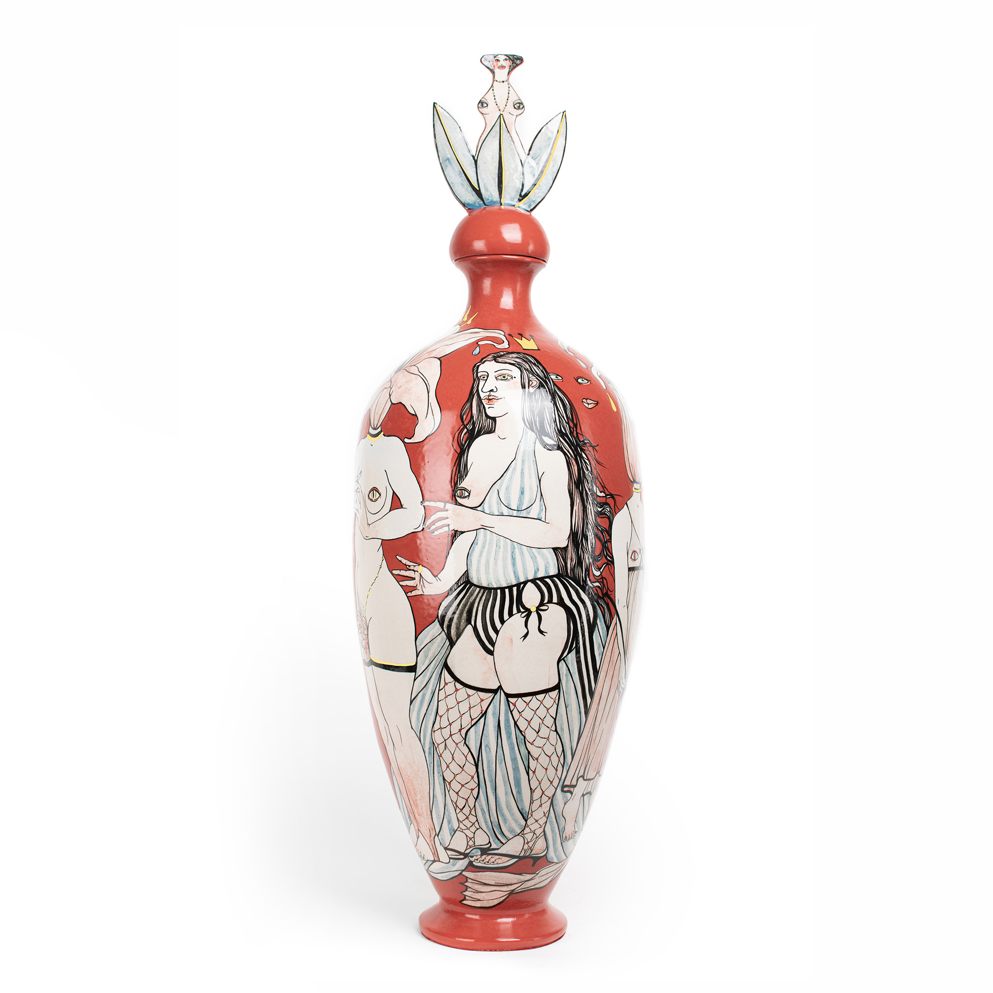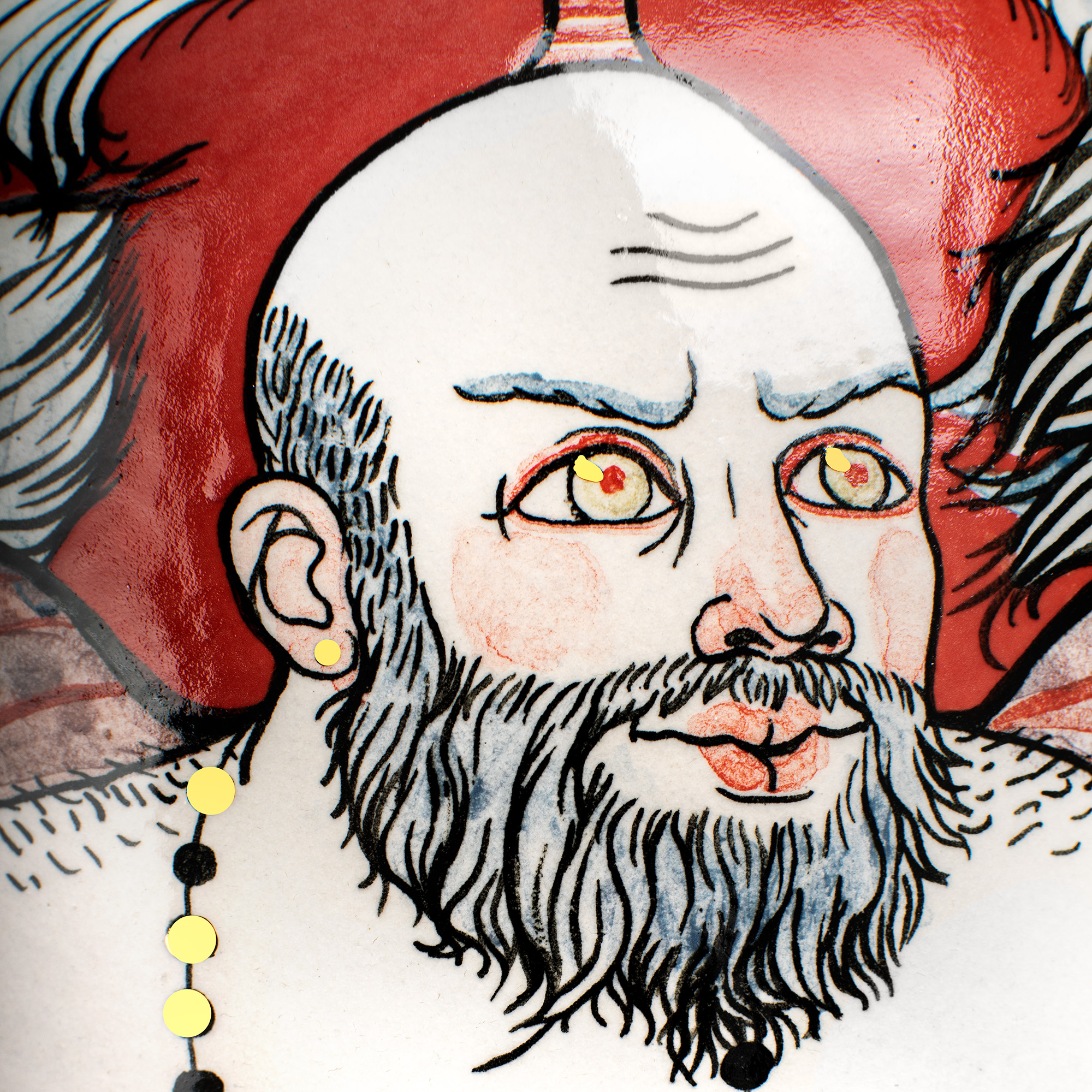 Ceramic vase, underglaze drawing, gold, triple fire.