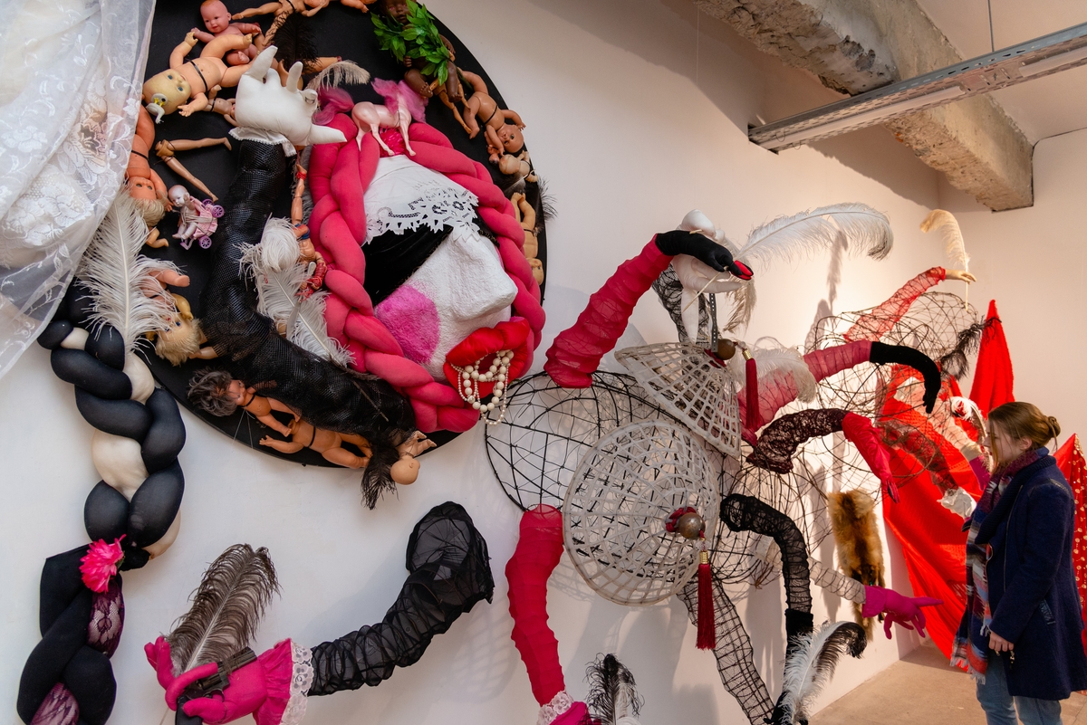 The top floor is an abundance of color and detail. Two installations from the “Insatiable” block are also included in this feast. A huge doll with pearls, meters of fabric and decor.