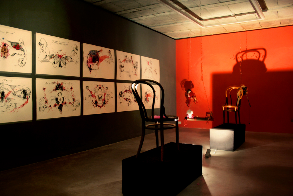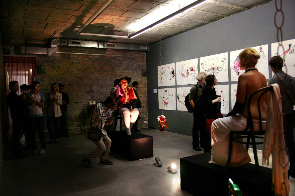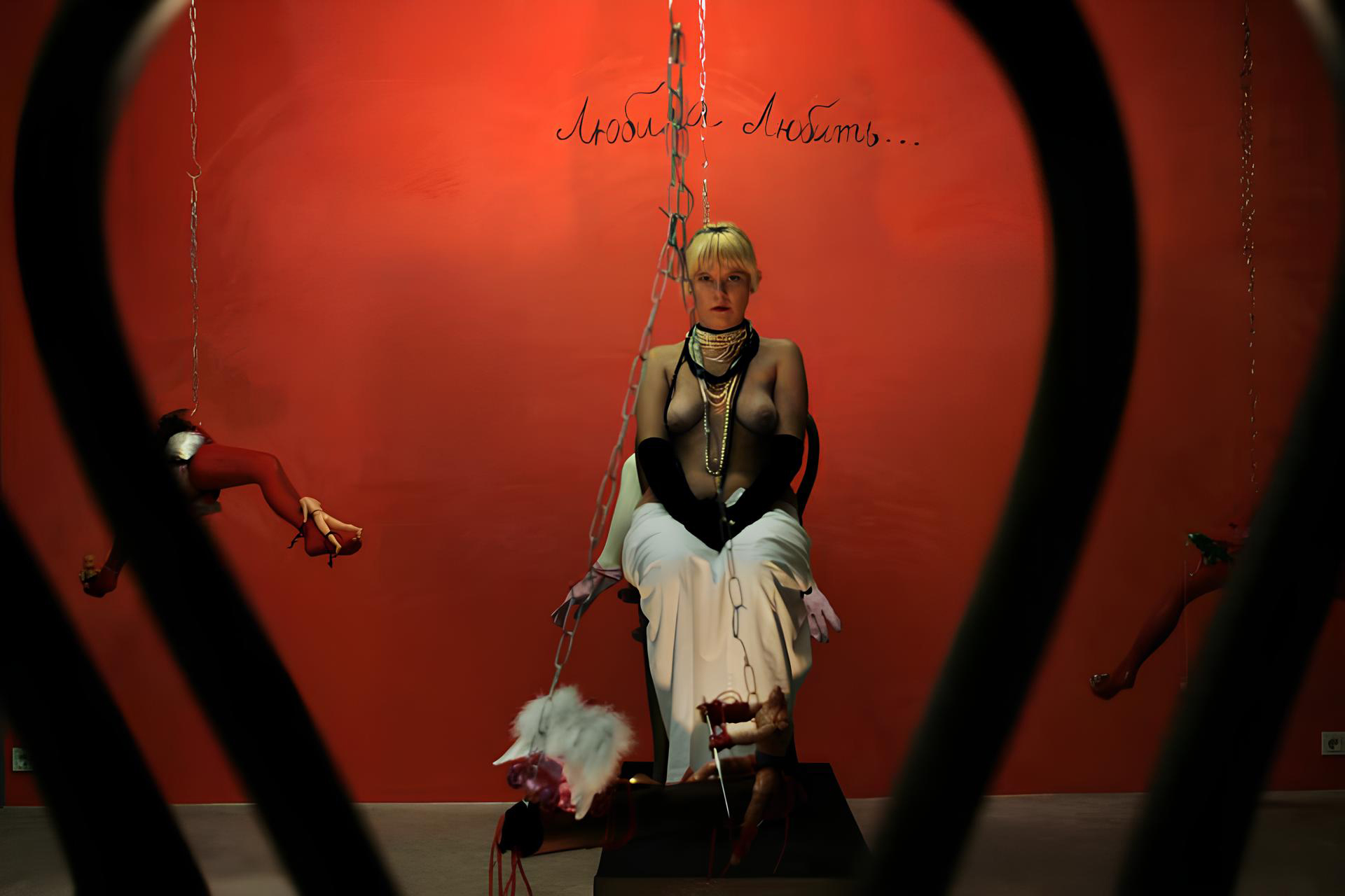 Nina Murashkina who never expressed much humbleness or reserve creates a project in honor of herself in Ya Gallery Art Center. In the small hall of the art centre on Horyva Street the artist undertakes a study of the transformation of a woman's sensual side from child's uncertain guesses about the nature of the "down there" through sexual self-realization to maturity and fading. In Murashkina's case, it is impossible to expressly differentiate where the sex ends and the art begins, as all the causal links are intentionally broken.