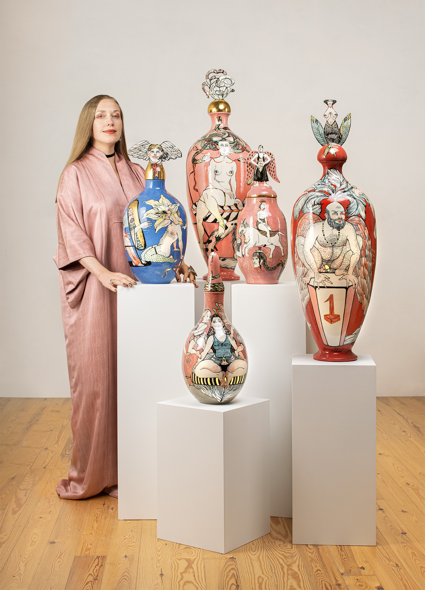 Nina Murashkina is a Ukrainian artist, who has been living and working in Catalonia since 2017. Through ceramics and porcelain, she explores the intersection of myth, femininity, and contemporary identity, creating objects of both poetic delicacy and profound meaning. The series “Inner Passions” includes ceramic vases inspired by ancient Greece, embodying tenderness, strength, and feminine sensibility. Alongside them are one-of-akind ceramic plates, which bridge the gap between functional design and collectible art, and a collection of porcelain jewelry—brooches and rings that can be worn as accessories or framed as intimate interior pieces. In 2023, her series “Still Waters Run Deep” received the FAD Art Prize in Barcelona, praised for its formal strength, clarity of narrative, and fusion of tradition with contemporary vision. With Inner Passions, Murashkina invites viewers to reflect on inner worlds, the poetry of form, and the timeless dialogue between antiquity and modernity.