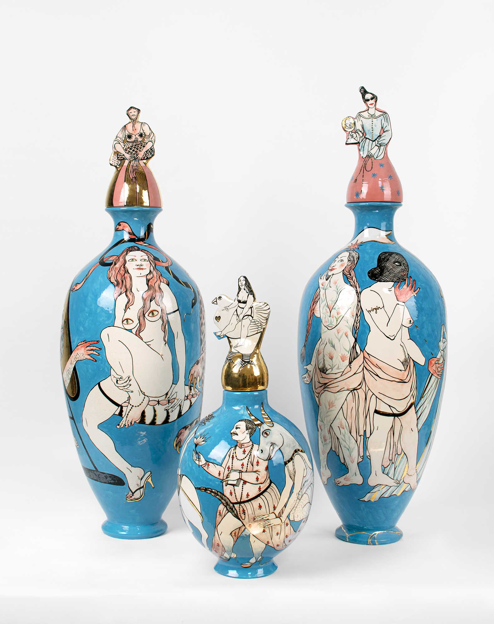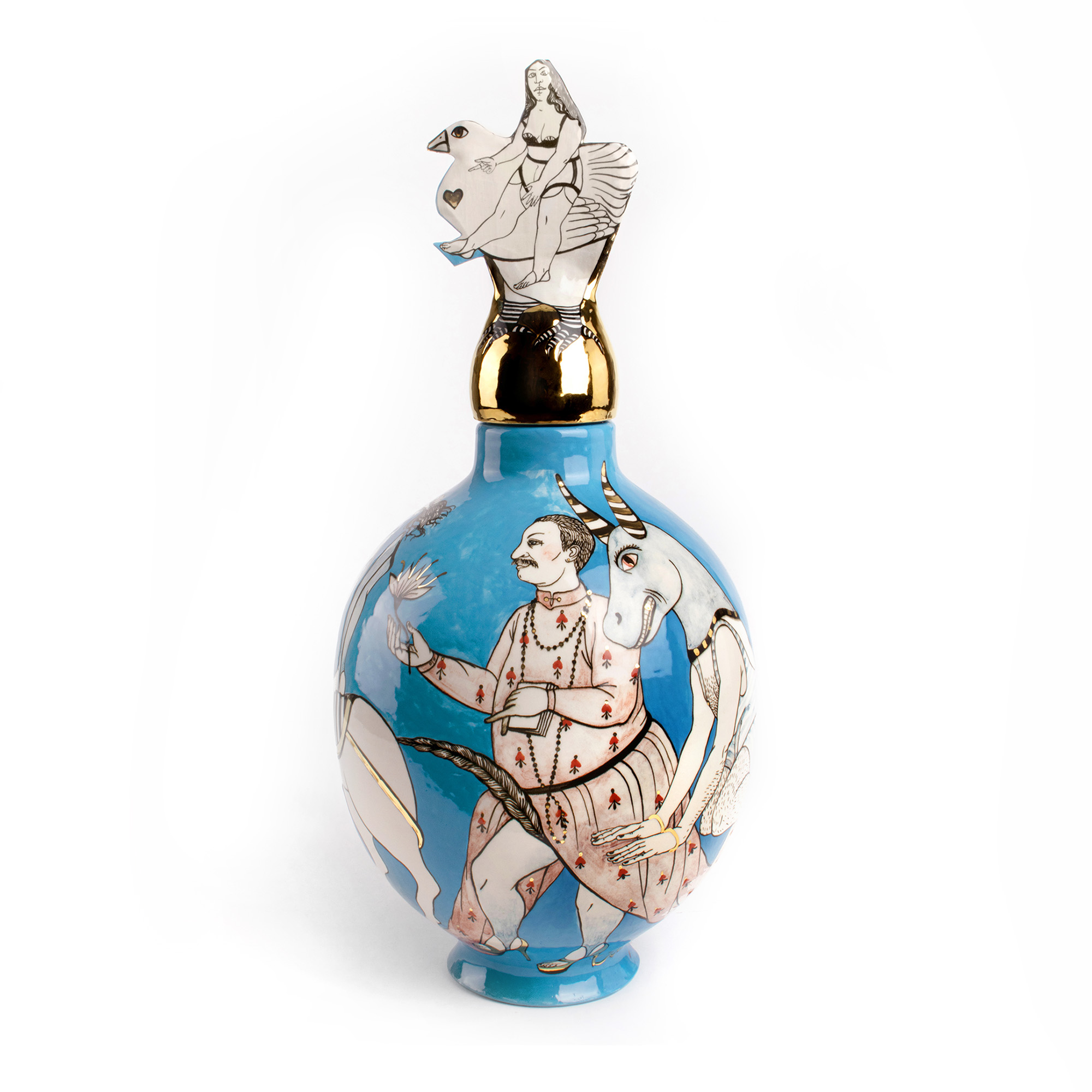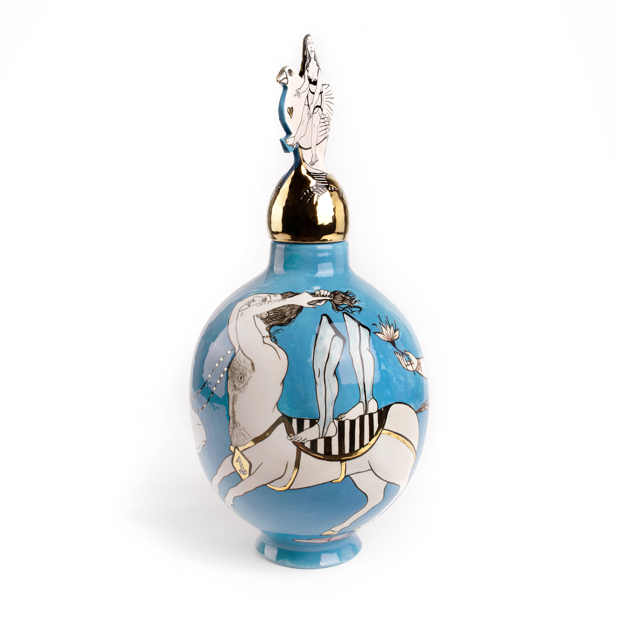 Ceramic vase, underglaze drawing, gold, triple fire.