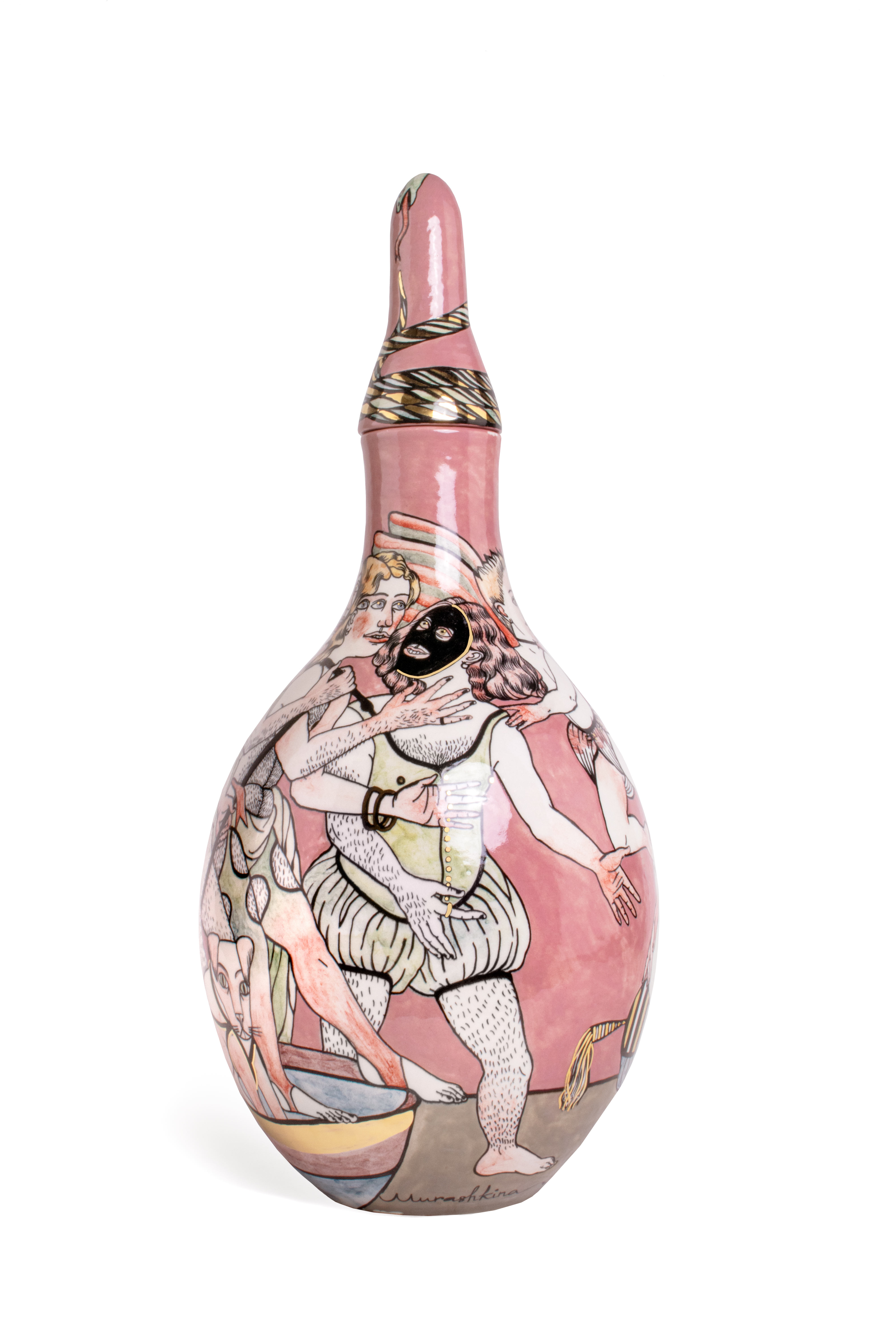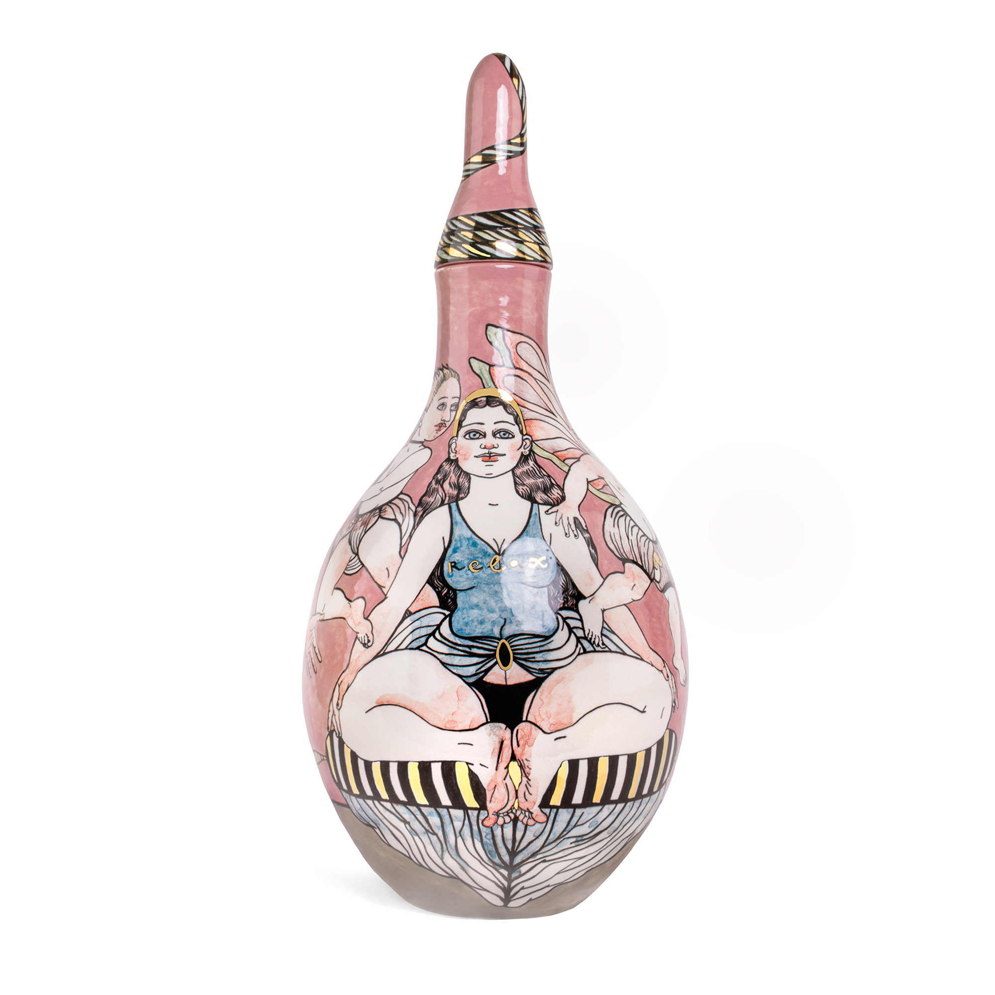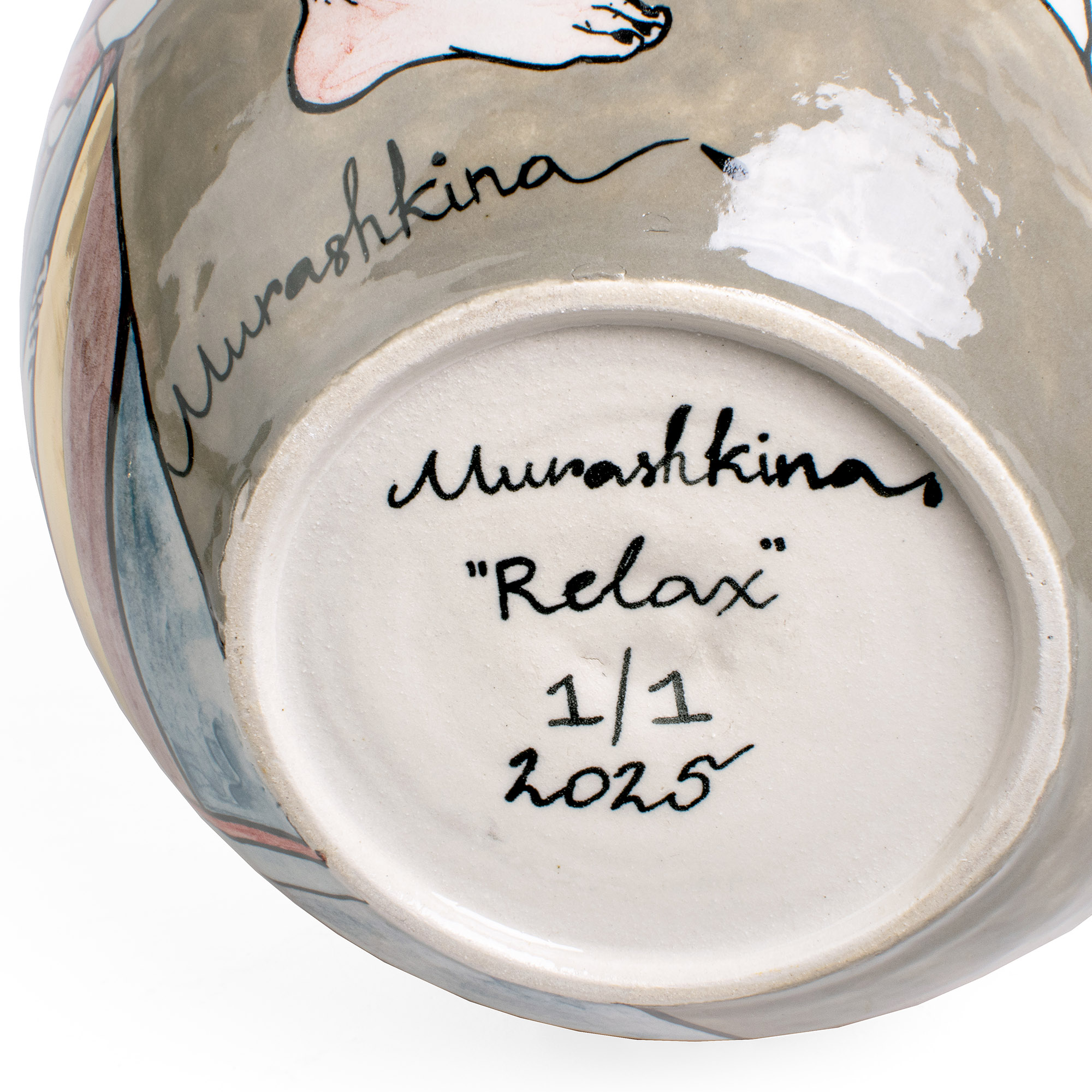 Relax Ceramic vaase, underglaze drawing, gold, triple fire. 58 x 25 x 25 cm 2025
