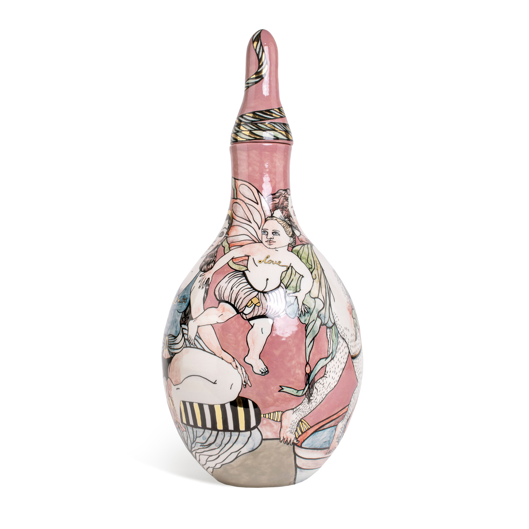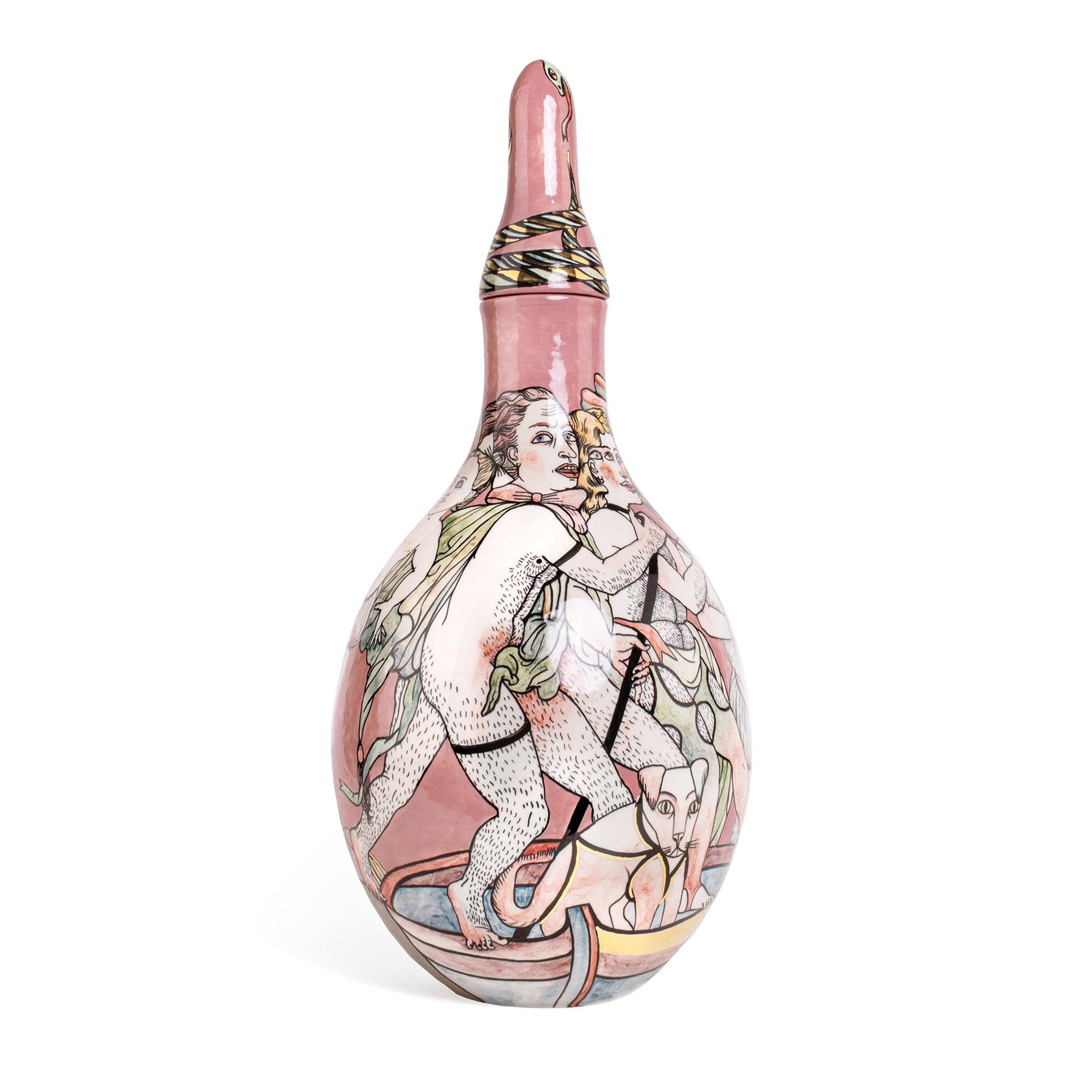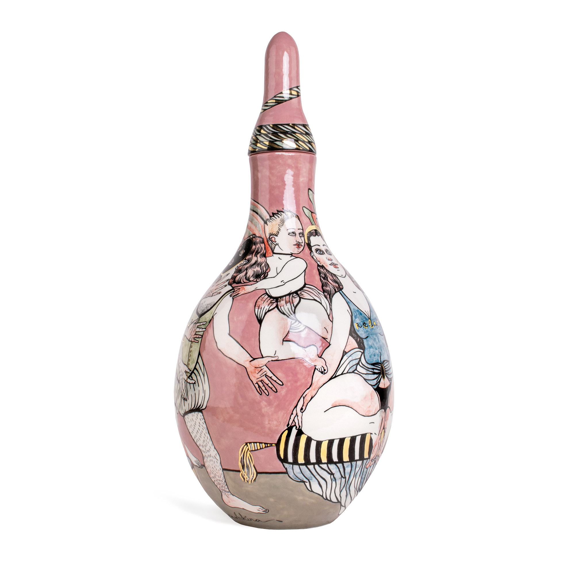 Relax Ceramic vaase, underglaze drawing, gold, triple fire. 58 x 25 x 25 cm 2025