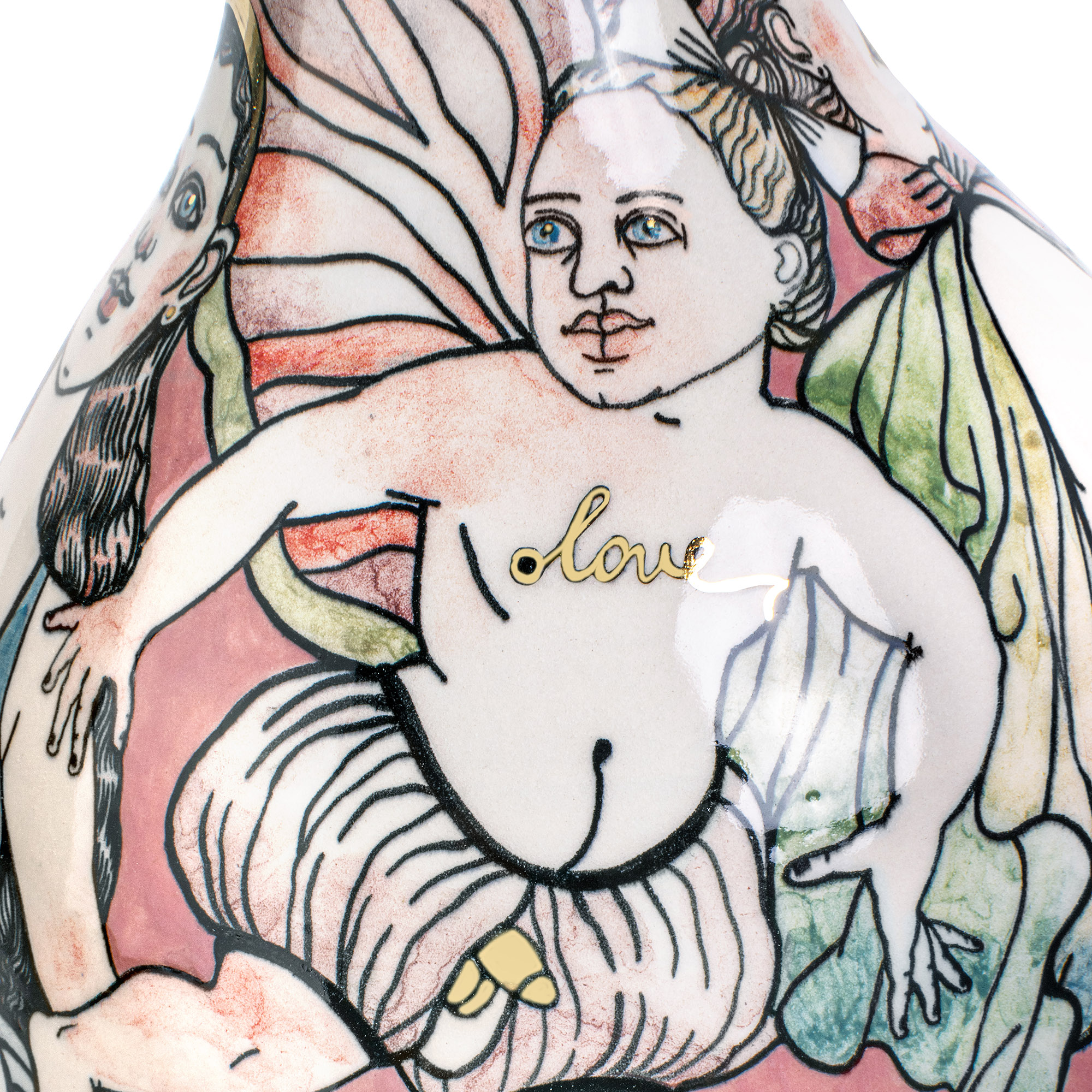 Relax Ceramic vaase, underglaze drawing, gold, triple fire.